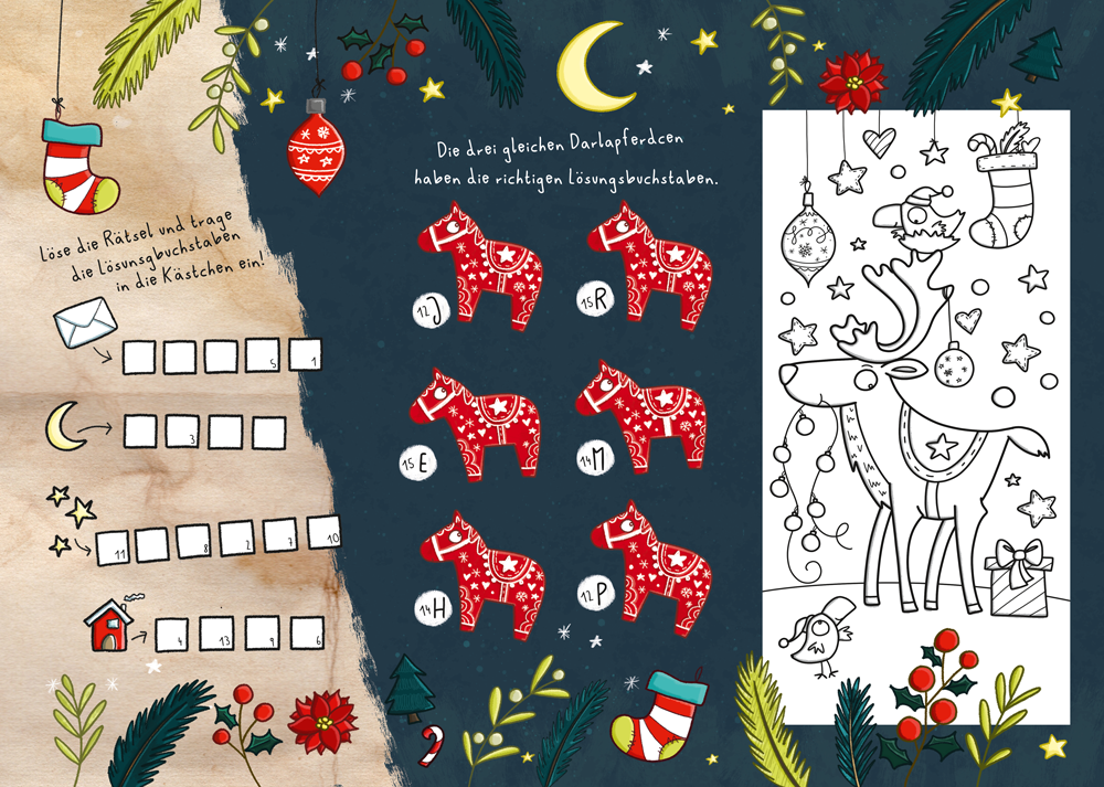 Neben meiner Lieblingsbeschäftigung: dem Zeichnen, tüfftele ich mitunter auch Rätsel für Rätselbücher aus oder entwerfe ganze Konzepte für Bücher oder Kinderprodukte.