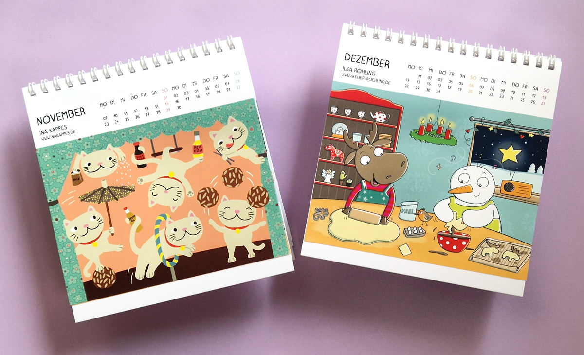 Und vorallem habe ich gelernt, dass Akquise auch richtig Spaß machen kann. Letztes Jahr haben wir als Gruppe von 12 Illustratorinnen einen Kalender rausgebracht. Ja, zur Akquise! Aber auch als Gemeinschaftsprojekt, das uns wirklich viel Spaß gebracht hat. 🙂
